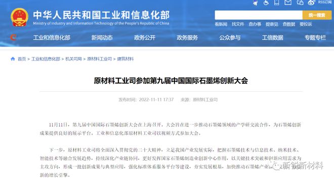 03工信部原材料工業(yè)司參加第九屆中國國際石墨烯創(chuàng)新大�(huì)