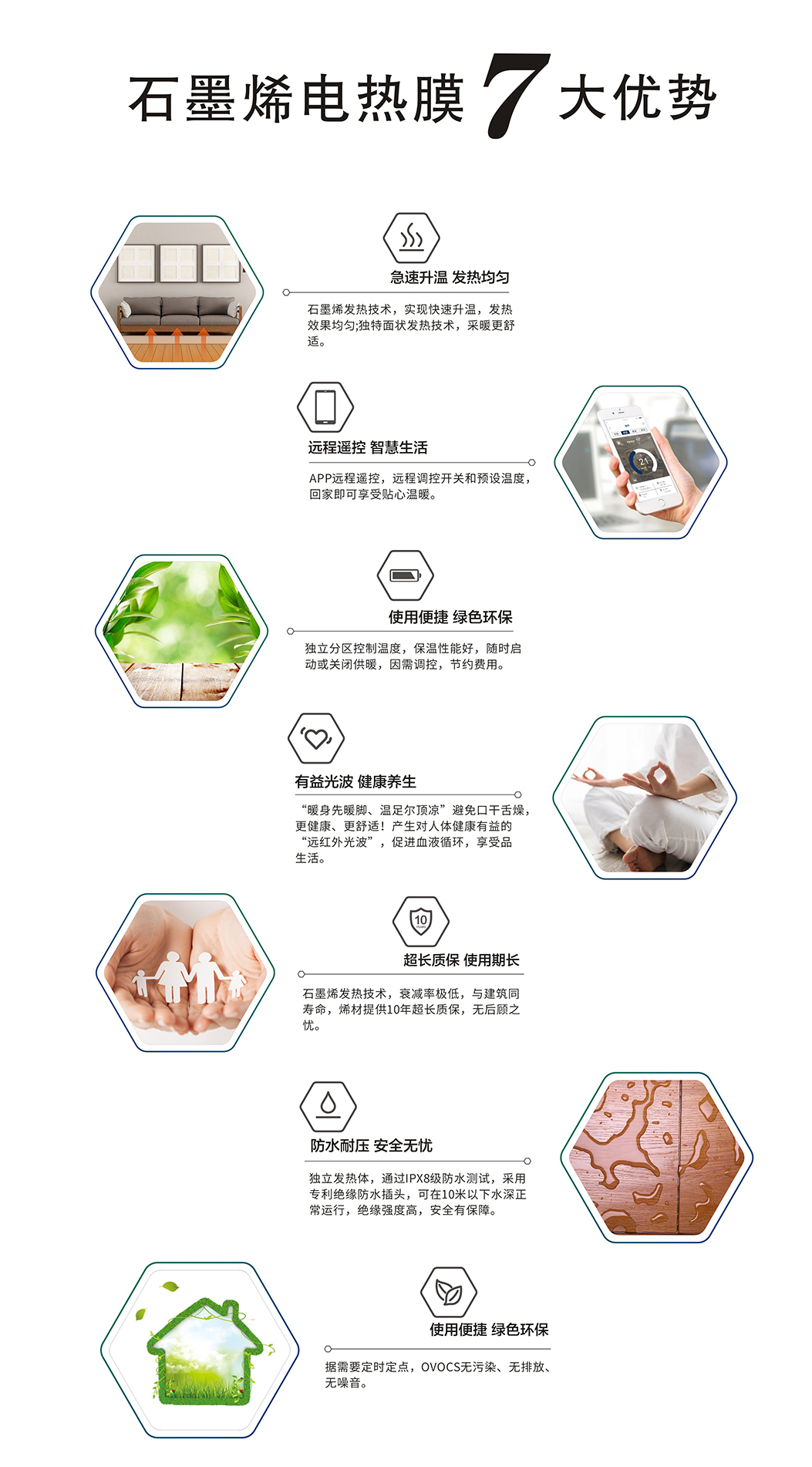 石墨烯電熱膜電熱膜供暖系�(tǒng)不產(chǎn)生煙塵和粉塵,沒(méi)有噪音和因室�(nèi)空氣�(duì)流引起的浮塵,符合城市規(guī)劃要求,適合�(xiàn)代社�(huì)綠色�(huán)保的要求�
